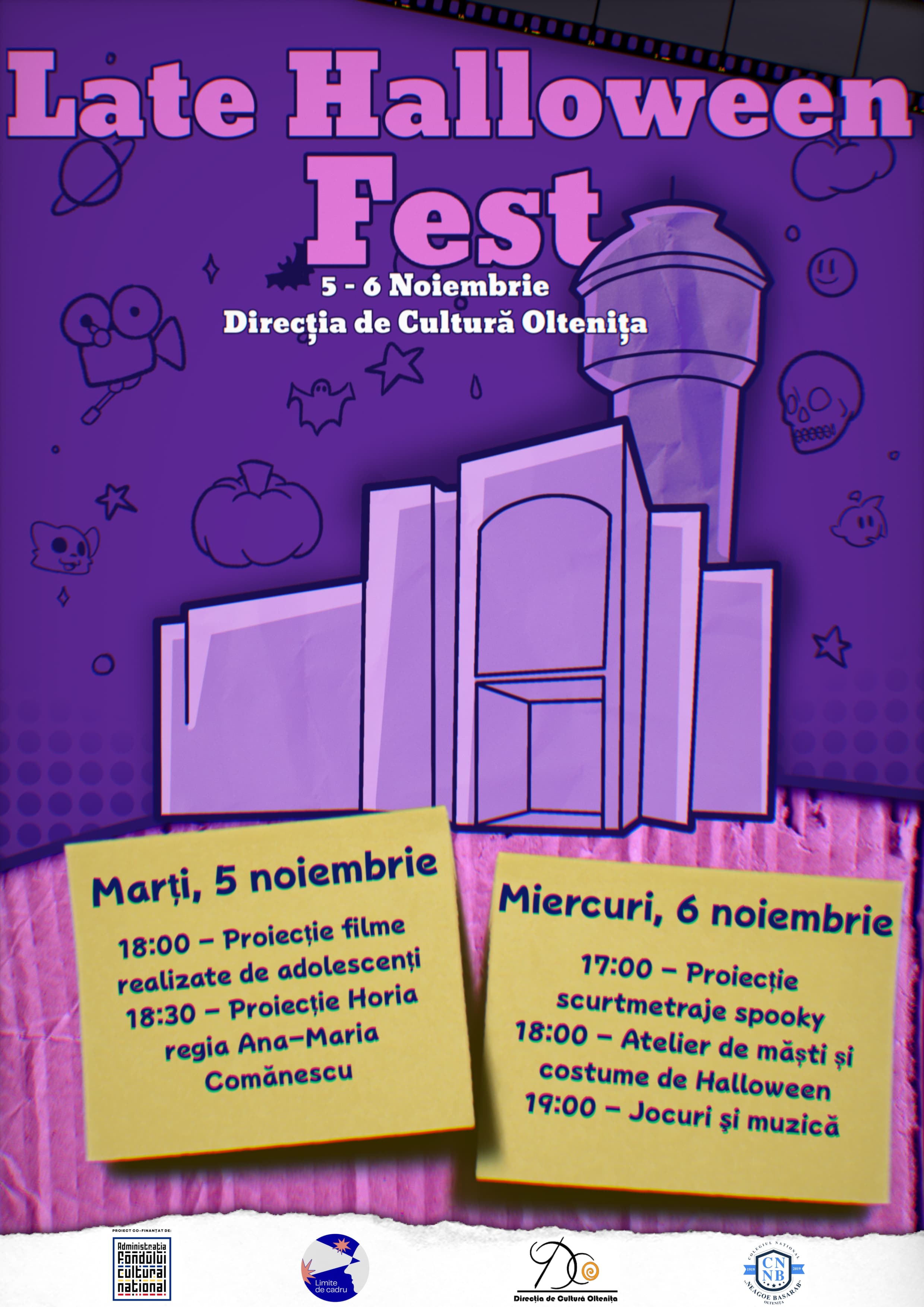 Late Halloween Fest va avea loc la Direcția de Cultură Oltenița pe 5 și 6 noiembrie, după cum urmează: